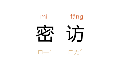 引明 刘基 《郁离子·枸橼》:“他日又求焉,予之柑,王食之,尤美,则意其犹有美者未予也。惎使者聘于 吴 而密访焉。”《二刻拍案惊奇》卷四:“石按臺 早知此事,密访已久,如何轻贷得!”《三侠五义》第九回:“公孙策 见礼已毕,便将密访的情由如此如此,这般这般,细细述了一遍。”