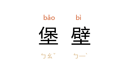 引《后汉书·陈俊传》:“视人保壁坚完者,勑令固守;放散在野者,固掠取之。”《三国志·魏志·常林传》:“林 率其宗族,为之策谋,见围六十餘日,卒全堡壁。”《资治通鉴·晋孝武帝太元九年》:“十一月, 嘉 入 长安,众闻之,以为 坚 有福,故圣人助之, 三辅 堡壁及四山 氐 羌 归 坚 者四万餘人。”