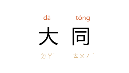 英语Datong or Great community in neo-Confucian philosophy, sim. New Jerusalem, Datong or Tatung district of Taipei City 臺北市|台北市[Tai2 bei3 shi4], Taiwan, Datong prefecture level city in Shanxi 山西, Datong or Tatung township in Yilan county 宜蘭縣|宜兰县[Yi2 lan2 xian4], Taiwan