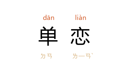 引鲁迅 《且介亭杂文末编·我的第一个师父》:“他想的乃是千金小姐或少奶奶;而作这‘相思’或‘单相思’--即今之所谓‘单恋’也--的媒介的是‘结’。”戴望舒 《单恋者》诗:“我觉得我是在单恋着,但是我不知道是恋着谁。”