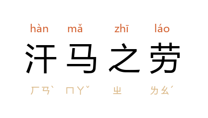 ⒈ 本指做战时,战马奔驰而大量出汗。语出后比喻战功或工作的成绩与辛劳。也作「汗马功劳」、「汗马功绩」、「汗马勋劳」、「汗马之功」、「汗马之绩」。