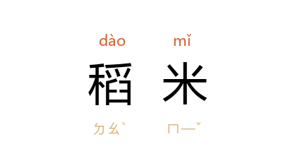 引《仪礼·士丧礼》:“稻米一豆实於筐。”唐 杜甫 《忆昔》诗:“稻米流脂粟米白,公私仓廩俱丰实。”宋 杨万里 《观小儿戏打春牛》诗:“麦穗即看云作帚,稻米亦復珠盈斗。”