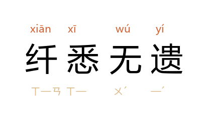 ⒈ 形容非常详尽,连最微小的部分都没有遗漏。唐·李珏〈故丞相太子少师赠太尉牛公神道碑铭·序〉:「自婴疾至于捐馆,谭笑言语,宴居自若,口占理命,纤悉无遗。」也作「纤芥不遗」。