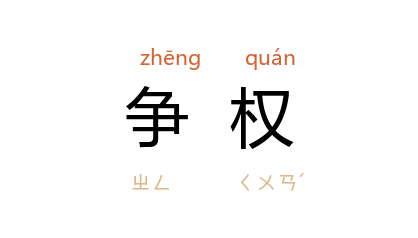 引《荀子·解蔽》:“故以贪鄙背叛争权而不危辱灭亡者,自古及今,未尝有之也。”《汉书·昭帝纪》:“初, 桀 安 父子与大将军 光 争权,欲害之。”唐 杜甫 《白帝城放船有诗凡四十韵》:“迴首黎元病,争权将帅诛。”宋 洪迈 《容斋随笔·耳馀袁刘》:“张耳、陈餘 少时为刎颈交,其后争权,相与致死地而不厌。”