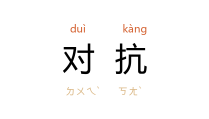 例如:对抗情绪;对抗行动;田径对抗赛。