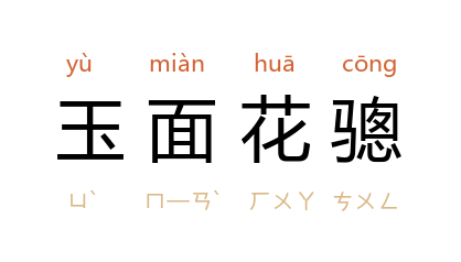 ⒈ 即玉花骢。旧题唐·柳宗元《龙城录·宁王画马化去》:“宁王善画马,开元·兴庆池南,华萼楼下,壁上有六马滚尘图,内明皇最眷爱玉面化骢。”参见“玉花骢”。