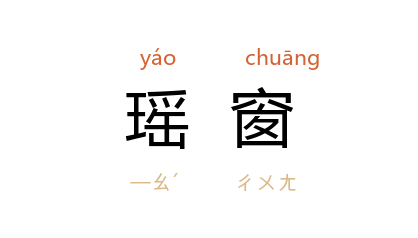 引唐 王勃 《七夕赋》:“列瑶牕而送燠,闢银牓而迎秋。”唐 李商隐 《圣女祠》诗:“松篁臺殿蕙香幃,龙护瑶窗凤掩扉。”清 郑燮 《一枝竹十五片叶呈七太守》诗:“努力作秋声,瑶窗弄风雨。”