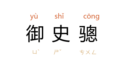 ⒈ 《后汉书·桓典传》:“辟司徒袁隗府,举高第,拜侍御史。是时宦官秉权,典执政无所回避。常乘骢马,京师畏惮,为之语曰:‘行行且止,避骢马御史。’”后用为御史典故。