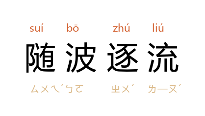 ⒈ 后因以“随波逐流”比喻无原则、无立场地与世相浮沉。
