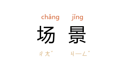 ⒈ 指戏剧、电影等艺术作品中的场面。