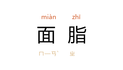 引北魏 贾思勰 《齐民要术·种红蓝花栀子》:“合面脂法:用牛髓。”宋 周邦彦 《月中行·怨怅》词:“蜀 丝趁日染乾红,微暖面脂融。”清 吴伟业 《萧史青门曲》:“同谢面脂 龙德殿,共乘油壁 月华门。”