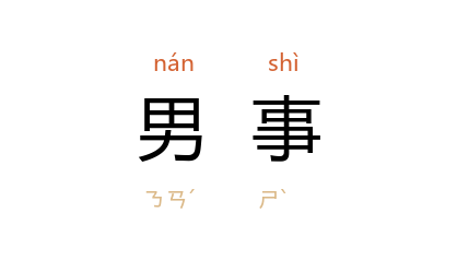 引《礼记·内则》:“三十而有室,始理男事。”郑玄 注:“男事,受田给政役也。”孔颖达 疏:“‘始理男事’者,三十丁壮受其田土,供给征役,始理男事。”《商君书·画策》:“女事尽於内,男事尽於外,则入多矣。”
