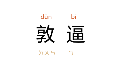 引《晋书·隐逸传·戴逵》:“孝武帝 时,以散骑常侍、国子博士累徵,辞父疾不就。郡县敦逼不已,乃逃於 吴。”南朝 陈 徐陵 《陈武帝下州郡玺书》:“朕东西退让,拜手陈辞……而公卿敦逼,率土翘惶。”清 吴伟业 《临江参军》诗:“诸营势溃亡,羣公意敦逼。”