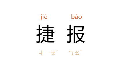 ⒈ 战胜的消息。也泛指好消息。「国家队于奥运夺金的捷报传来,举国欢腾。」