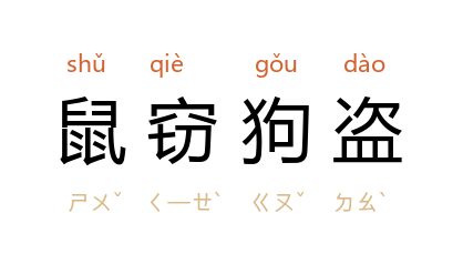 ⒈ 像鼠狗般的偷盗。比喻行为偷偷摸摸、盗窃小利的人。也作「狗盗鼠窃」、「狗偷鼠窃」、「鼠窃狗偷」。
