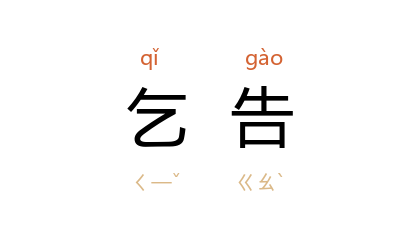 引宋 穆修 《上颖州刘侍郎书》:“乞告归养,以慰倚门悽悽之望。”元 无名氏 《刘弘嫁婢》第三折:“在 玉帝 前展脚舒腰,叩头出血……乞告一子,见今十三岁,乃 刘奇童 是也。”明 高明 《琵琶记·乞丐寻夫》:“藉手乞告些盘缠,早晚与他烧香化纸。”