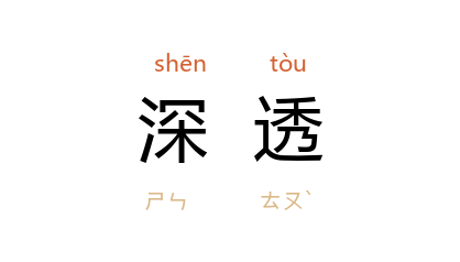 引清 沉初 《西清笔记·纪名迹》:“右军 《快雪时晴帖》真跡,纸黄微黝,坚緻润泽,墨色深透,自是千百年以上物。”郭沫若 《羽书集·“侵略日本”的两种姿态》:“侵略国这个烙印已经深透了 日本 的额骨,无论怎样是掩饰不了的。”