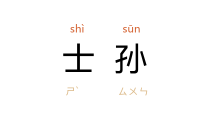⒈ 复姓。 汉 代有 士孙张。见《汉书·儒林传·梁丘贺》。
