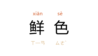 引晋 夏侯湛 《玄鸟赋》:“挺参差之修尾,发緇素之鲜色。”唐 孟郊 《凭周况先辈于朝贤乞茶》诗:“锦水 有鲜色, 蜀山 饶芳丛。”宋 吴自牧 《梦粱录·八日祠山圣诞》:“其日,龙舟六双,戏於湖中。其舟俱装十太尉、七圣、 二郎神 、神鬼、快行、锦体浪子、黄胖,杂以鲜色旗伞、花篮、闹竿、鼓吹之类。”