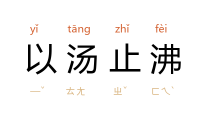引《吕氏春秋·季春纪·尽数》:「夫以汤止沸,沸愈不止,去其火,则止矣。」