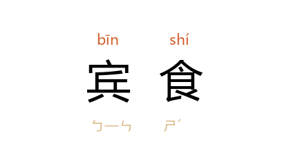 ⒈ 语出《左传·昭公四年》:“其出之也,朝之禄位,宾、食、丧、祭,于是乎用之。”本谓迎宾和用膳,后亦指宴请宾客。