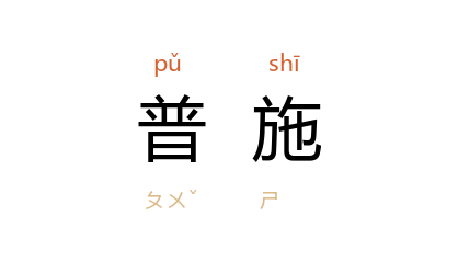 引《晏子春秋·问上七》:“不以宫室之侈,劳人之力,节取於民而普施之。”《史记·五帝本纪》:“高辛 生而神灵,自言其名。普施利物,不於其身。”《晋书·礼志上》:“地德普施,惠存无疆,乃建太社,保佑万邦。”唐 吕令则 《义井赋》:“饮之则长鸣而忘其苦辛,酌之则充量而欣其普施。”