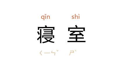 ⒉ 集体寝室,主要作睡觉用、通常住很多人的大房间。又如:寝庙(宗庙)