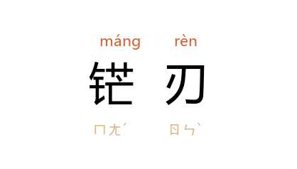 引唐 刘禹锡 《唐故衡州刺史吕君集纪》:“两科连中,鋩刃愈出。”一本作“芒刃”。 唐 元稹 《授王播中书侍郎平章事兼盐铁使制》:“重委操剸,鋩刃益精。”