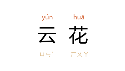 引南朝 齐 王融 《永明乐》诗之六:“香风流梵琯,泽雨散云花。”《艺文类聚》卷七七引 南朝 陈 徐陵 《报德寺刹下铭》:“梵妓宵唱,云花昼飜。”元 袁桷 《善之携酒招游西湖值雷雨分韵得杯字》:“南山树影糊轻煤,北山云花玉崔嵬。”冯金堂 《挖塘》:“这时天上没有半点云花,月色格外分明。”