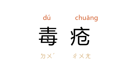 ⒈ 皮肤上带有毒性的肿烂溃疡病。