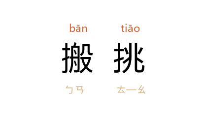 ⒈ 调唆、挑拨是非。元·徐再思〈柳营曲·投木桃〉曲:「妳娘还问著,小玉会搬挑。教,推道把夜香烧。」也作「搬唆」。