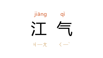 引唐 张九龄 《岁初巡属县登高安南楼言怀》诗:“江气偏宜早,林英粲已繁。”宋 王安石 《题朱郎中白都庄》诗:“山光隔钓岸,江气杂炊烟。”清 黄景仁 《夏夜》诗:“江城如斗江气溼,万派涛声静中合。”