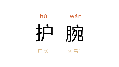 ⒈ 如击剑者或球类运动员所用的戴在手腕上防止扭伤的防护套;尤指射箭运动员戴的一种通常皮革制的防护套,以防止左腕因弓弦突然绷断而被弹伤。
