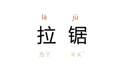 例如:「这根木头真粗硬,我们拉锯了半天仍然锯不开。」