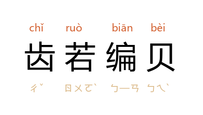 ⒈ 形容牙齿如编排的海贝般洁白整齐。也作「齿如含贝」、「齿如齐贝」。