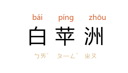 引《太平寰宇记·卷九四·江南东道六·湖州》:「白苹洲在霅溪之东南,去洲一里。洲上有鲁公颜真卿芳亭,内有梁太守柳恽诗云:『汀洲采白苹,日晚江南春。』因以为名。」