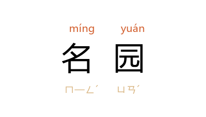 引唐·杜甫〈陪郑广文游何将军山林诗〉一〇首之一:「名园依绿水,野竹上青霄。」