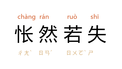 ⒈ 失意而闷闷不乐,好像丢失了什么似的。形容伤感迷惘的情状。