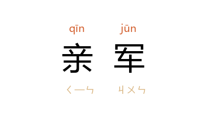 引《新唐书·兵志》:“乾寧 元年……又詔诸王閲亲军,收拾神策亡散,得数万。”《辽史·兵卫志中》:“汉武帝 多行幸之事,置期门、佽飞、羽林之目,天子始有亲军。”清 孙致弥 《咏史次王玠右先生韵》:“龙虎亲军三十万,登坛空想 霍嫖姚。”
