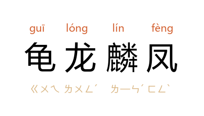 ⒈ 传统上用来象征高寿、尊贵、吉祥的四种动物。比喻身处高位德盖四海的人。