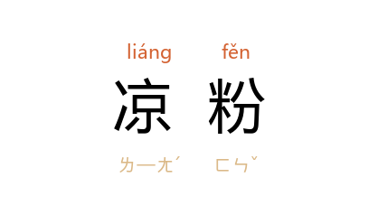 ⒈ 绿豆粉做成的冷食。常用醋、辣豆瓣酱等调味料拌和著吃。