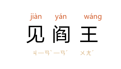 引唐 崔泰之 《哭李峤》诗:“魂随司命鬼,魄逐见阎王。”金 董解元 《西厢记诸宫调》卷五:“却见先生,这里恰待悬梁。些儿来迟,已成不救,定应一命见阎王。”刘半农 《拟儿歌--小猪落地》:“一条小命见阎王。”