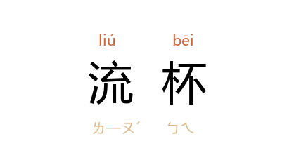 引北周 庾信 《春赋》:“树下流杯客,沙头渡水人。”唐 杜牧 《和严恽秀才落花》:“共惜流年流不得,且环流水醉流杯。”宋 李格非 《洛阳名园记·吕文穆园》:“流盃,水虽急,不旁触为异。”