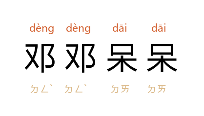⒈ 呆笨迟钝貌。邓,用同“钝”。