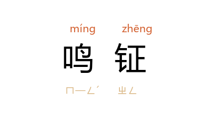 引明 沉璟 《义侠记·奇功》:“听鸣鉦,解奸徒向 高唐 远行。”清 袁枚 《随园诗话》卷二:“今人开舡鸣鉦,未知起于何时。”柳子戏《孙安动本》第一场:“当朝首相,鸣钲开道旌旗扬,前护后拥朝堂上,满朝文武俱景仰。”