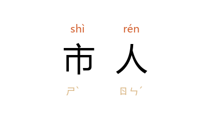 ⒈ 指集市或城中街道上的人。市民;城市平民。市肆中人,商人。指市井流俗之人。泛指为生活名利而奔走之人。