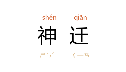 引唐 苏鹗 《杜阳杂编》卷中:“知 眉娘 不愿住禁中,遂度以黄冠,放归 南海,仍赐号曰‘逍遥’。及后神迁,香气满室。”唐 《隆阐法师碑》:“以 大足 元年十月廿二日神迁,春秋六十有二。”