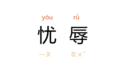 引《孟子·离娄上》:“苟不志於仁,终身忧辱,以陷於死亡。”《北齐书·文襄纪》:“东魏 主不堪忧辱,咏 谢灵运 诗曰:‘ 韩 亡 子房 奋, 秦 帝 鲁连 耻;本自江海人,忠义感君子。’因流涕。”《东周列国志》第四四回:“今 晋 人索臣,臣不往,兵必不解,是臣避死不忠,而遗君以忧辱也,臣请往!”