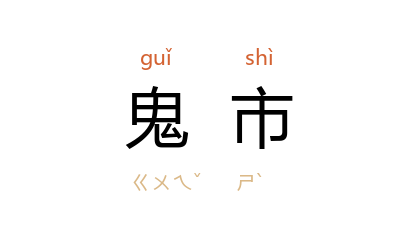 宋 孟元老 《东京梦华录·潘楼东街巷》:“茶坊每五更点灯,博易买卖衣服图画花环领抹之类,至晓即散,谓之‘鬼市子’。”
