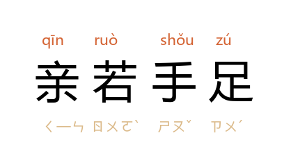 ⒈ 手足:指兄弟。像兄弟一样的亲密。
